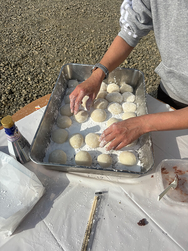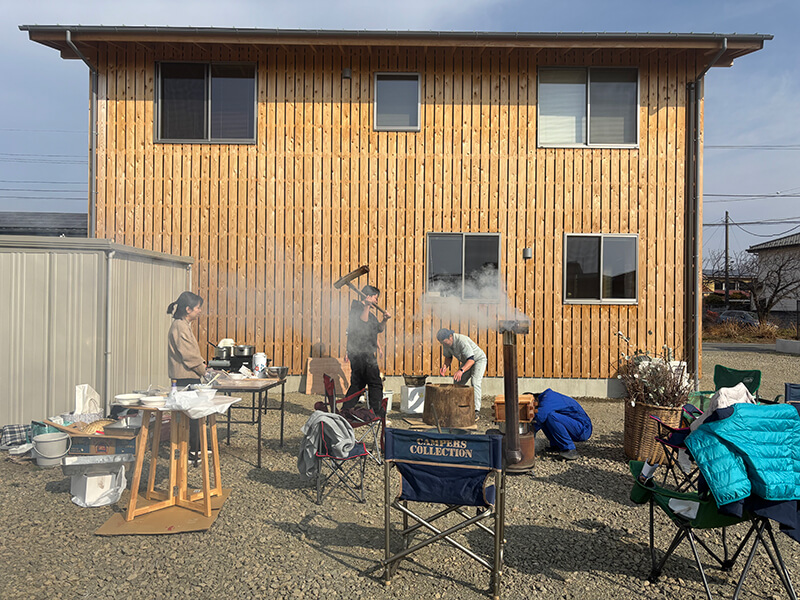 なんか餅つきしたいねと言う数人の雑談から始まった餅つき計画。全員の持ち物と知恵と力を総動員して楽しい餅つき大会となりました。